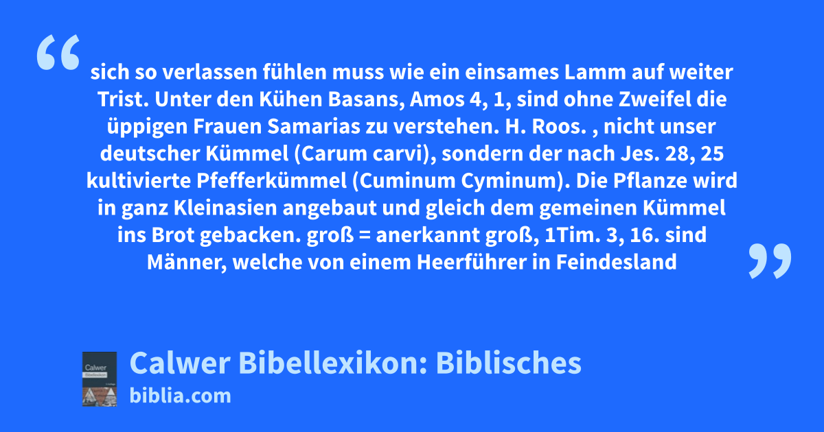 — 4) Die Kuh ist wie sonst das Kalb auch Bild störrischen, unbändigen Wesens, Hos. 4, 16. Israel, welches das Joch Jahwes nicht mehr tragen wollte, wird von Gott in der großen Völkerwüste (Assyrien) sich selbst überlassen, dass es sich so verlassen fühlen muss wie ein einsames Lamm auf weiter Trist. Unter den Kühen Basans, Amos 4, 1, sind ohne Zweifel die üppigen Frauen Samarias zu verstehen.