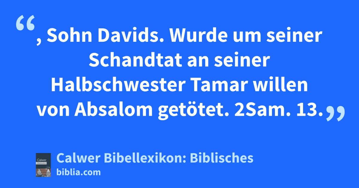 Amnon, Sohn Davids. Wurde um seiner Schandtat an seiner Halbschwester Tamar willen von Absalom getötet. 2Sam. 13.