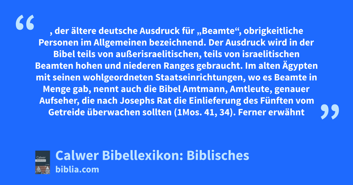 Amtmann, Amtleute, der ältere deutsche Ausdruck für „Beamte“, obrigkeitliche Personen im Allgemeinen bezeichnend. Der Ausdruck wird in der Bibel teils von außerisraelitischen, teils von israelitischen Beamten hohen und niederen Ranges gebraucht.
