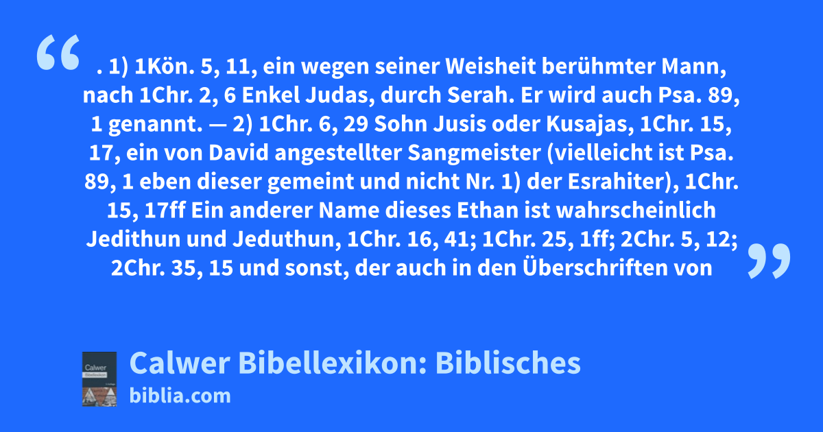 Ein anderer Name dieses Ethan ist wahrscheinlich Jedithun und Jeduthun, 1Chr. 16, 41; 1Chr. 25, 1ff; 2Chr. 5, 12; 2Chr. 35, 15 und sonst, der auch in den Überschriften von Psa. 39. Psa. 62 und Psa. 77 genannt ist.