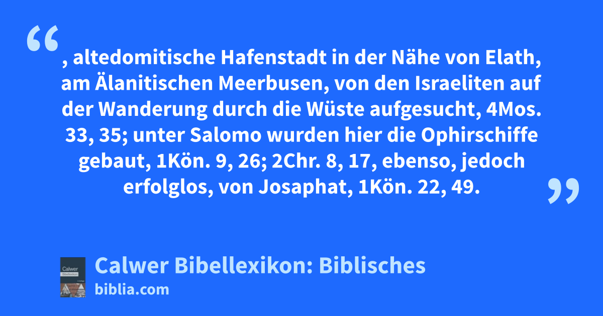 Ezeongeber, altedomitische Hafenstadt in der Nähe von Elath, am Älanitischen Meerbusen, von den Israeliten auf der Wanderung durch die Wüste aufgesucht, 4Mos. 33, 35; unter Salomo wurden hier die Ophirschiffe gebaut, 1Kön. 9, 26; 2Chr. 8, 17, ebenso, jedoch erfolglos, von Josaphat, 1Kön. 22, 49.