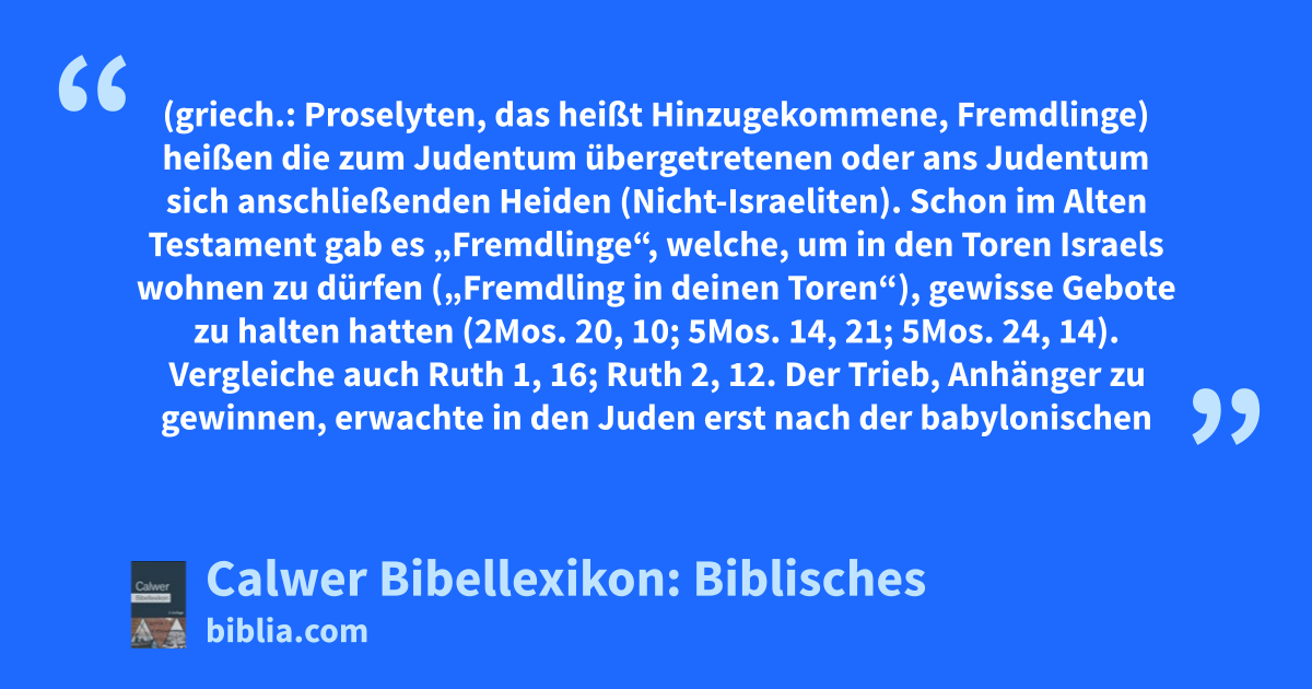 Schon im Alten Testament gab es „Fremdlinge“, welche, um in den Toren Israels wohnen zu dürfen („Fremdling in deinen Toren“), gewisse Gebote zu halten hatten (2Mos. 20, 10; 5Mos. 14, 21; 5Mos. 24, 14). Vergleiche auch Ruth 1, 16; Ruth 2, 12. Der Trieb, Anhänger zu gewinnen, erwachte in den Juden erst nach der babylonischen Gefangenschaft; siehe die Vorrede des Jesus Sirach, vergleiche Matth. 23, 15.