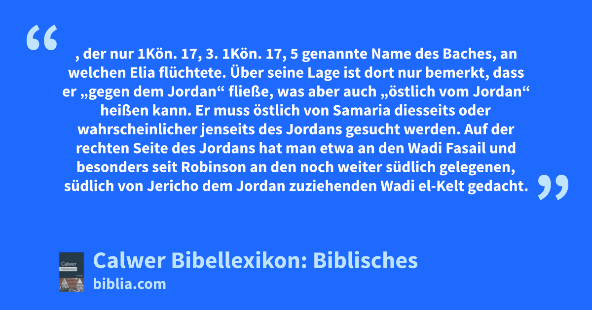 Krith, der nur 1Kön. 17, 3. 1Kön. 17, 5 genannte Name des Baches, an welchen Elia flüchtete. Über seine Lage ist dort nur bemerkt, dass er „gegen dem Jordan“ fließe, was aber auch „östlich vom Jordan“ heißen kann.