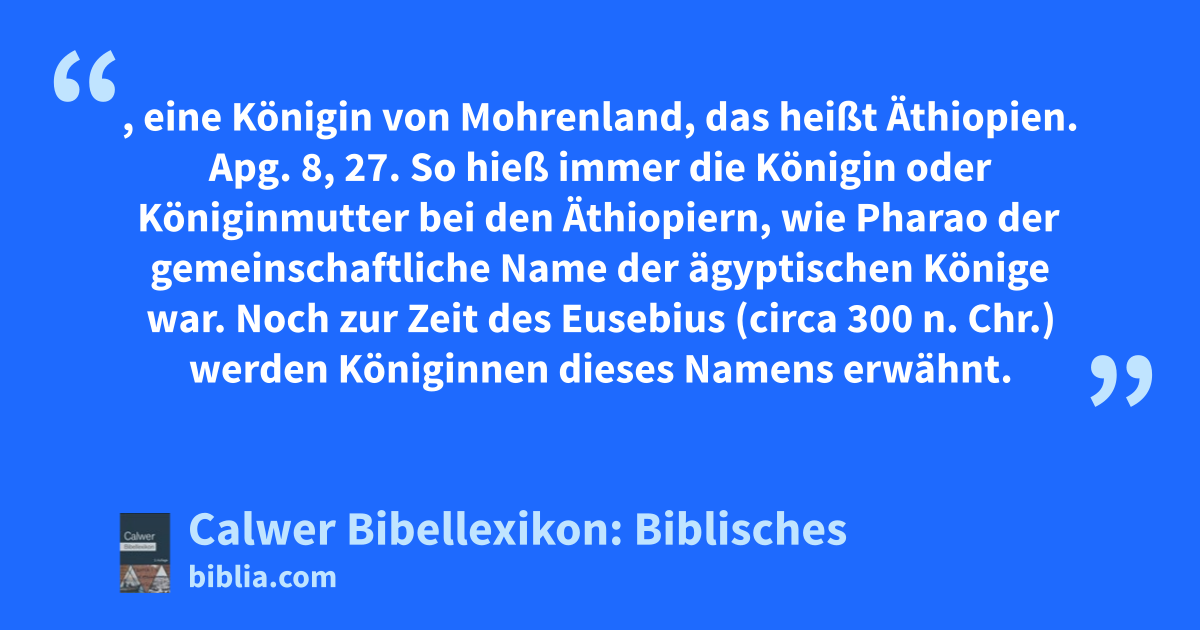 So hieß immer die Königin oder Königinmutter bei den Äthiopiern, wie Pharao der gemeinschaftliche Name der ägyptischen Könige war.