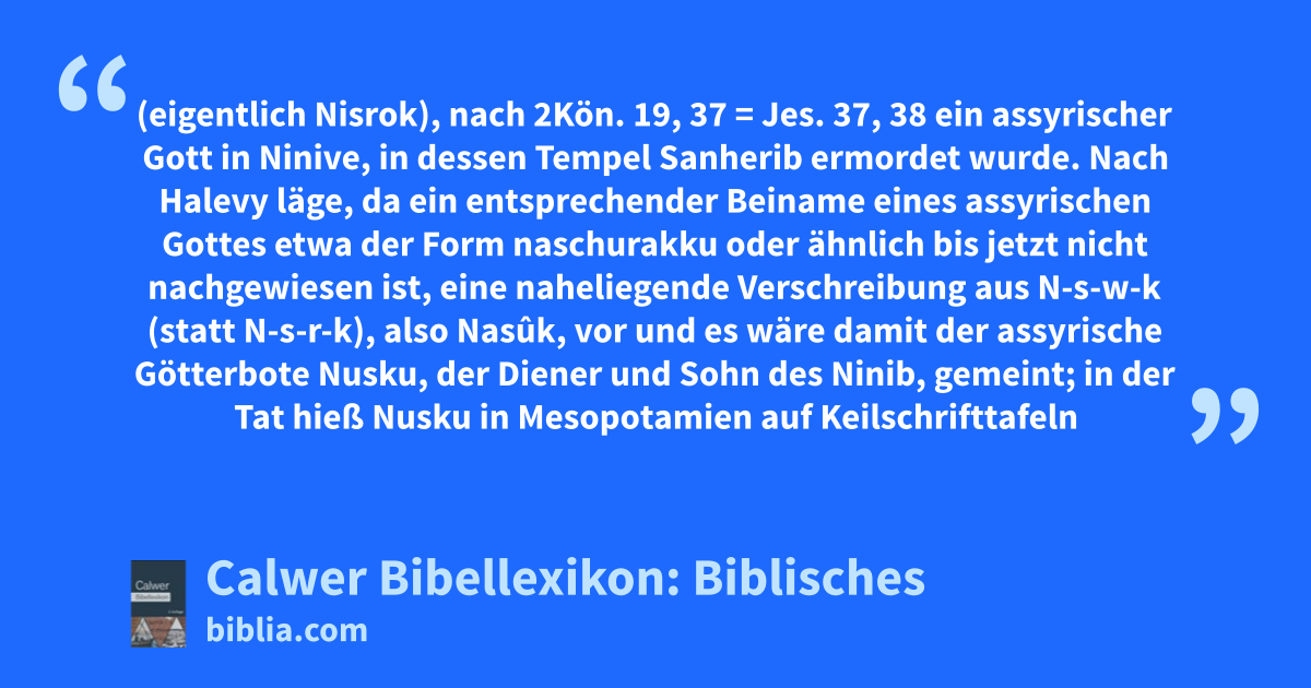 Nisroch (eigentlich Nisrok), nach 2Kön. 19, 37 = Jes. 37, 38 ein assyrischer Gott in Ninive, in dessen Tempel Sanherib ermordet wurde.