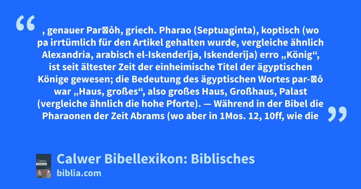 Pharao, genauer Par‛ôh, griech. Pharao (Septuaginta), koptisch (wo pa irrtümlich für den Artikel gehalten wurde, vergleiche ähnlich Alexandria, arabisch el-Iskenderîja, Iskenderîja) erro „König“, ist seit ältester Zeit der einheimische Titel der ägyptischen Könige gewesen; die Bedeutung des ägyptischen Wortes par-‛ô war „Haus, großes“, also großes Haus, Großhaus, Palast (vergleiche ähnlich die hohe Pforte).