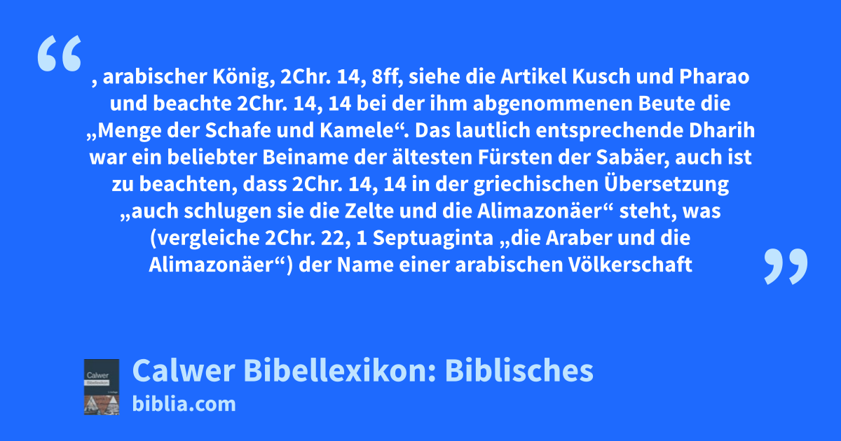 Das lautlich entsprechende Dharih war ein beliebter Beiname der ältesten Fürsten der Sabäer, auch ist zu beachten, dass 2Chr. 14, 14 in der griechischen Übersetzung „auch schlugen sie die Zelte und die Alimazonäer“ steht, was (vergleiche 2Chr. 22, 1 Septuaginta „die Araber und die Alimazonäer“) der Name einer arabischen Völkerschaft ist.