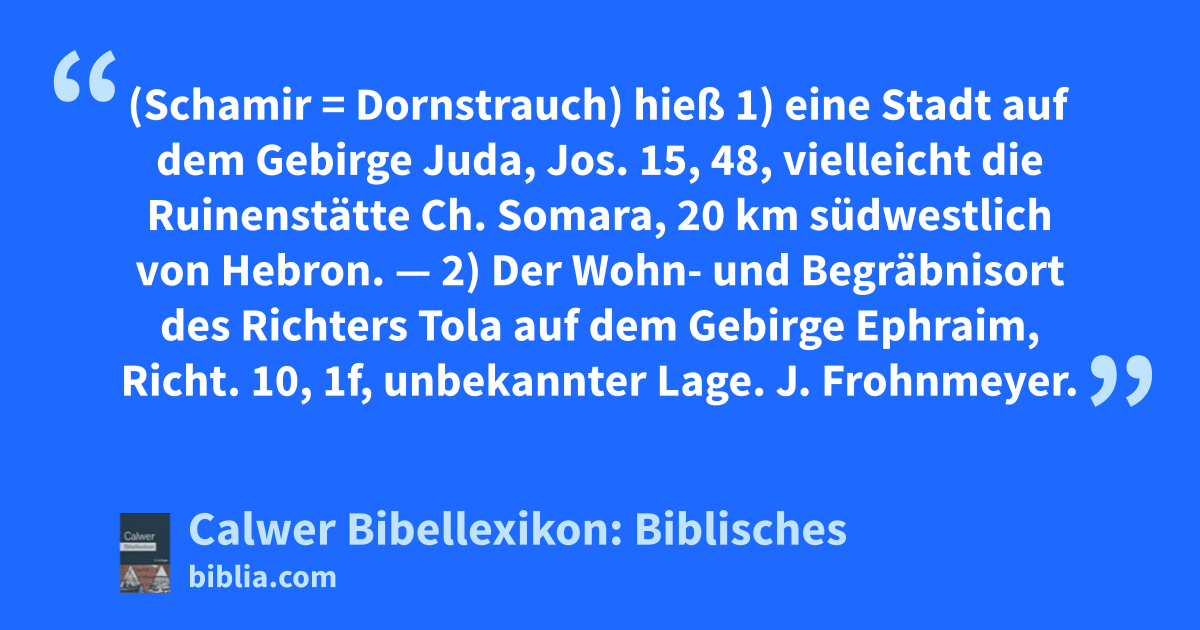 — 2) Der Wohn- und Begräbnisort des Richters Tola auf dem Gebirge Ephraim, Richt. 10, 1f, unbekannter Lage.