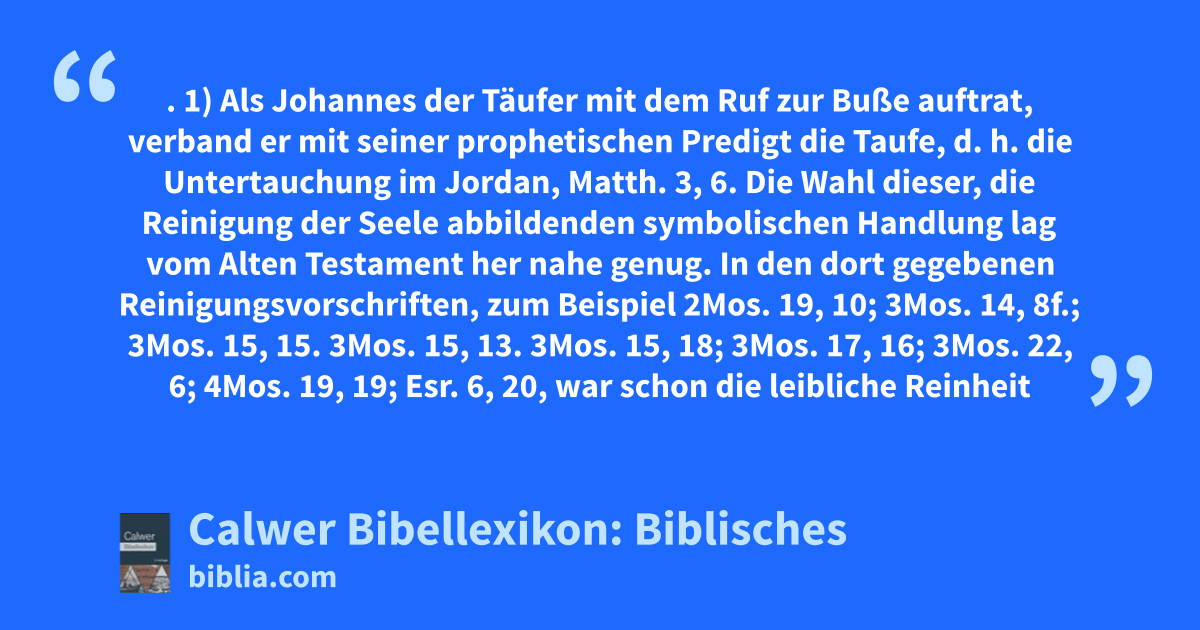 1) Als Johannes der Täufer mit dem Ruf zur Buße auftrat, verband er mit seiner prophetischen Predigt die Taufe, d. h. die Untertauchung im Jordan, Matth. 3, 6.