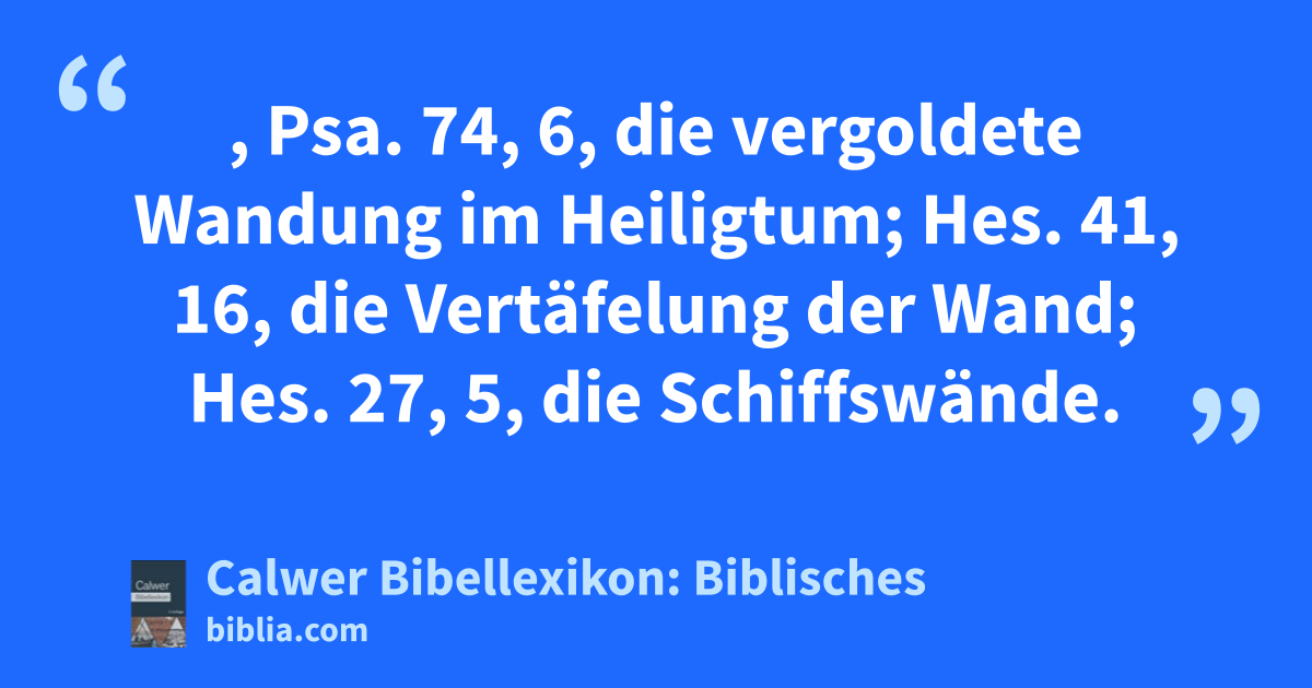 Tafelwerk, Psa. 74, 6, die vergoldete Wandung im Heiligtum; Hes. 41, 16, die Vertäfelung der Wand; Hes. 27, 5, die Schiffswände.