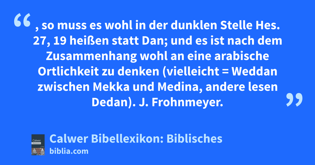 Vedan, so muss es wohl in der dunklen Stelle Hes. 27, 19 heißen statt Dan; und es ist nach dem Zusammenhang wohl an eine arabische Ortlichkeit zu denken (vielleicht = Weddan zwischen Mekka und Medina, andere lesen Dedan).
