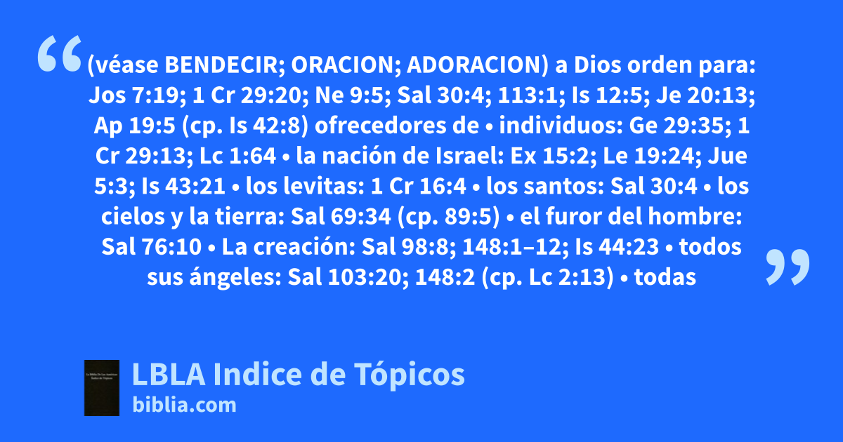 orden para: Jos 7:19; 1 Cr 29:20; Ne 9:5; Sal 30:4; 113:1; Is 12:5; Je 20:13; Ap 19:5 (cp. Is 42:8)