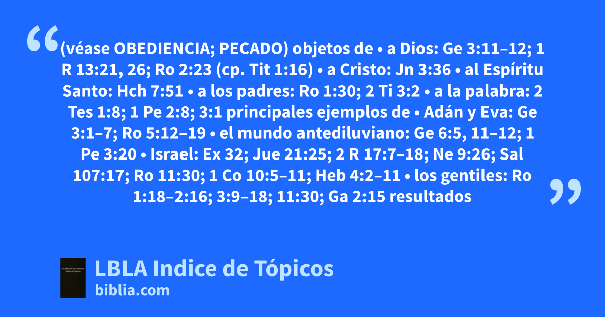 objetos de • a Dios: Ge 3:11–12; 1 R 13:21, 26; Ro 2:23 (cp. Tit 1:16) • a Cristo: Jn 3:36 • al Espíritu Santo: Hch 7:51 • a los padres: Ro 1:30; 2 Ti 3:2 • a la palabra: 2 Tes 1:8; 1 Pe 2:8; 3:1