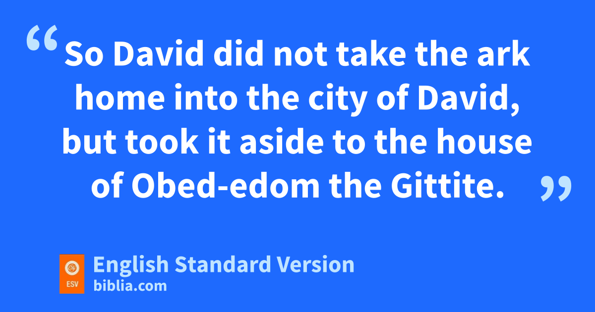 9 And when they came to the threshing floor of oChidon, Uzzah put out his hand to take hold of the ark, for the oxen stumbled. 10 And the anger of the Lord was kindled against Uzzah, and he struck him down pbecause he put out his hand to the ark, and qhe died there before God. 11 And David was angry because the Lord had broken out against Uzzah. And that place is called Perez-uzza4 to this day. 12 And David was afraid of God that day, and he said, “How can I bring the ark of God home to me?” 13 So David did not take the ark home into the city of David, but took it aside to the house rof Obed-edom the Gittite. 14 And the ark of God remained with the household of Obed-edom in his house three months. sAnd the Lord blessed the household of Obed-edom and all that he had.