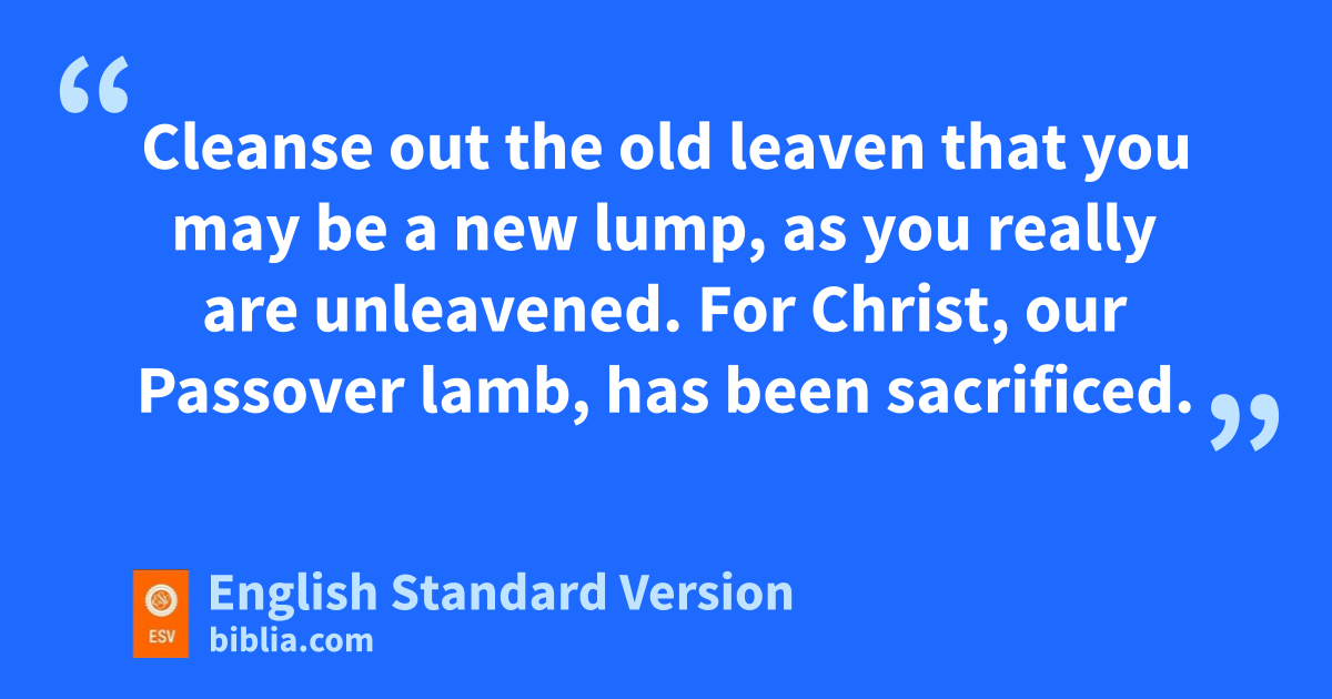 6 fYour boasting is not good. Do you not know that ga little leaven leavens the whole lump? 7 Cleanse out the old leaven that you may be a new lump, as you really are unleavened. For Christ, our Passover lamb, has been sacrificed. 8 Let us therefore celebrate the festival, hnot with the old leaven, ithe leaven of malice and evil, but with the unleavened bread of sincerity and truth.