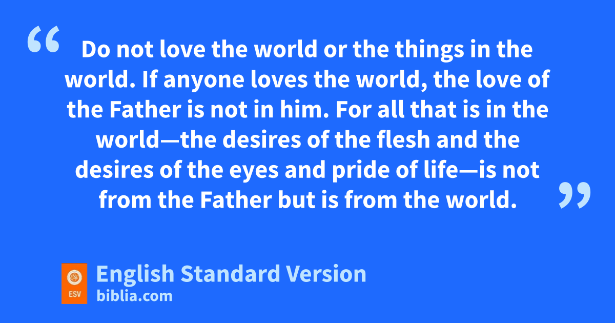 15 vDo not love the world or the things in the world. wIf anyone loves the world, the love of the Father is not in him. 16 For all that is in the world—xthe desires of the flesh and ythe desires of the eyes and pride of life3—is not from the Father but is from the world. 17 And zthe world is passing away along with its desires, but whoever does the will of God abides forever.