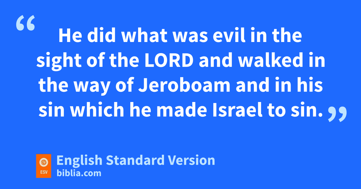 25 fNadab the son of Jeroboam began to reign over Israel in the second year of Asa king of Judah, and he reigned over Israel two years. 26 He did what was evil in the sight of the Lord gand walked in the way of his father, and in his sin hwhich he made Israel to sin.