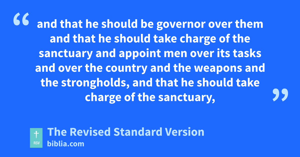41 “And the Jews and their priests decided that Simon should be their leader and high priest for ever, until a trustworthy prophet should arise, 42 and that he should be governor over them and that he should take charge of the sanctuary and appoint men over its tasks and over the country and the weapons and the strongholds, and that he should take charge of the sanctuary, 43 and that he should be obeyed by all, and that all contracts in the country should be written in his name, and that he should be clothed in purple and wear gold.