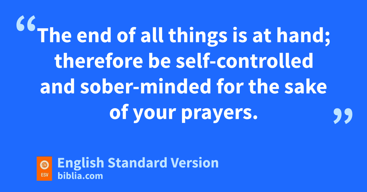 7 nThe end of all things is at hand; therefore obe self-controlled and sober-minded pfor the sake of your prayers. 8 Above all, keep loving one another earnestly, since qlove covers a multitude of sins. 9 rShow hospitality to one another without grumbling. 10 sAs each has received a gift, use it to serve one another, tas good stewards of God’s varied grace: 11 whoever speaks, as one who speaks uoracles of God; whoever serves, as one who serves vby the strength that God supplies—in order that in everything wGod may be glorified through Jesus Christ. xTo him belong glory and ydominion forever and ever. Amen.
