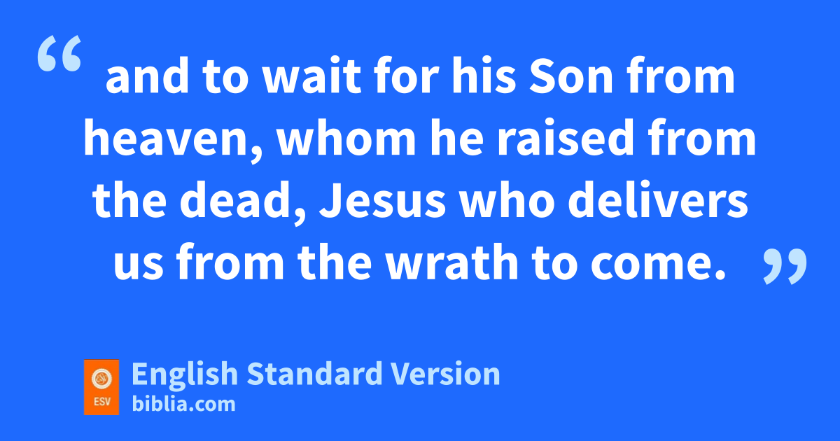 2 dWe give thanks to God always for all of you, constantly1 ementioning you in our prayers, 3 remembering before four God and Father gyour work of faith and labor of hlove and isteadfastness of hope in our Lord Jesus Christ. 4 For we know, jbrothers2 loved by God, kthat he has chosen you, 5 because lour gospel came to you not only in word, but also in power and min the Holy Spirit and with full nconviction. You know owhat kind of men we proved to be among you for your sake. 6 And pyou became imitators of us qand of the Lord, for ryou received the word in much affliction, swith the tjoy of the Holy Spirit, 7 so that you became an example to all the believers in Macedonia and in Achaia. 8 For not only has the word of the Lord usounded forth from you in Macedonia and Achaia, but your faith in God has gone forth veverywhere, so that we need not say anything. 9 For they themselves report concerning us the kind of wreception we had among you, and how xyou turned to God yfrom idols to serve the living and ztrue God, 10 and ato wait for his Son bfrom heaven, cwhom he raised from the dead, Jesus dwho delivers us from ethe wrath to come.