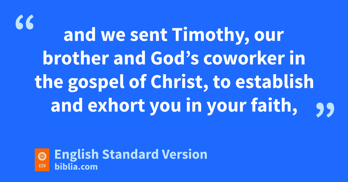 3 Therefore when we could bear it no longer, we were willing dto be left behind at Athens alone, 2 and we esent Timothy, four brother and God’s coworker1 in the gospel of Christ, to establish and exhort you in your faith, 3 that no one be moved by these afflictions. For you yourselves know that gwe are destined for this. 4 For when we were with you, we kept telling you beforehand that we were to suffer affliction, hjust as it has come to pass, and just as you know. 5 For this reason, iwhen I could bear it no longer, iI sent to learn about your faith, jfor fear that somehow kthe tempter had tempted you and lour labor would be in vain.