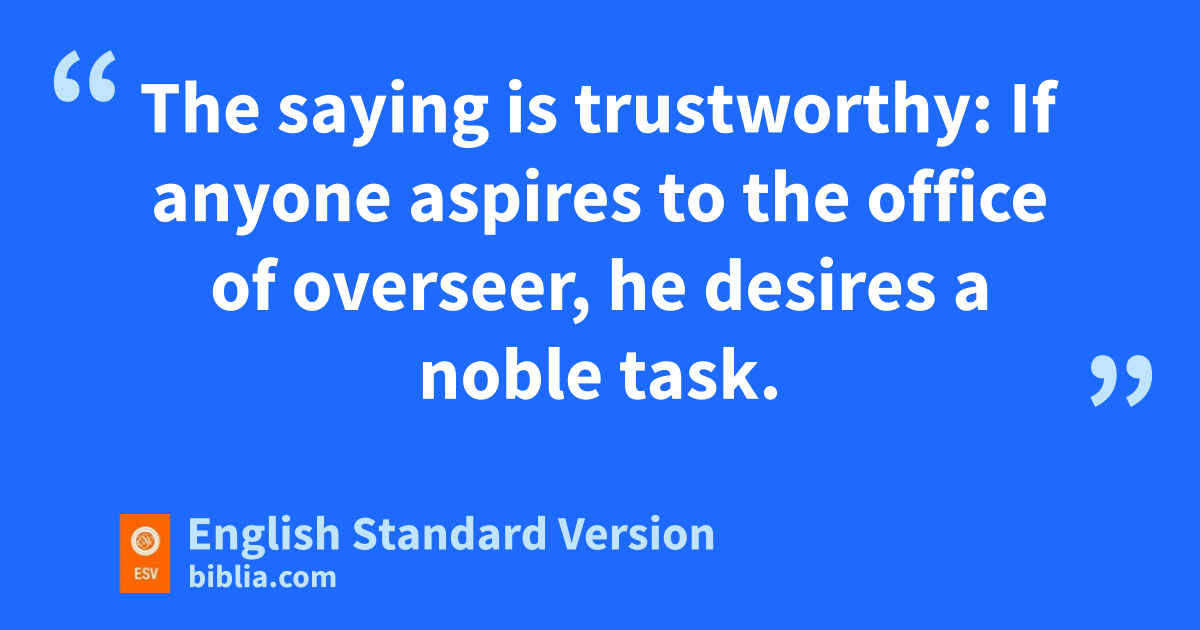 3 The saying is vtrustworthy: If anyone aspires to wthe office of overseer, he desires a noble task. 2 Therefore xan overseer1 must be above reproach, ythe husband of one wife,2 zsober-minded, self-controlled, respectable, ahospitable, bable to teach, 3 not a drunkard, not violent but cgentle, not quarrelsome, dnot a lover of money. 4 He must manage his own household well, with all dignity ekeeping his children submissive, 5 for if someone does not know how to manage his own household, how will he care for wGod’s church? 6 He must not be a recent convert, or he may fbecome puffed up with conceit and fall into the condemnation of the devil. 7 Moreover, he must be well thought of by goutsiders, so that he may not fall into disgrace, into ha snare of the devil.