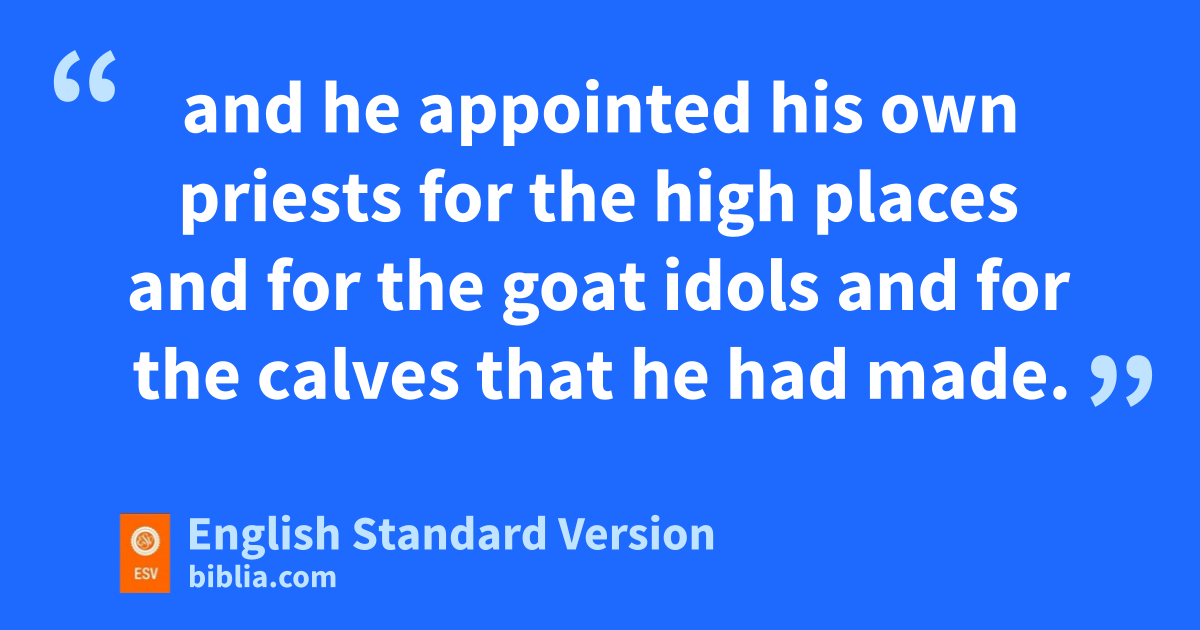 13 And the priests and the Levites who were in all Israel presented themselves to him from all places where they lived. 14 For the Levites left ptheir common lands and their holdings and came to Judah and Jerusalem, qbecause Jeroboam and his sons cast them out from serving as priests of the Lord, 15 and he appointed his own rpriests for the high places and for the goat idols and for sthe calves that he had made. 16 tAnd those who had set their hearts to seek the Lord God of Israel came after them from all the tribes of Israel to Jerusalem to sacrifice to the Lord, the God of their fathers. 17 uThey strengthened the kingdom of Judah, and for three years they made Rehoboam the son of Solomon secure, for they walked for three years in the way of David and Solomon.