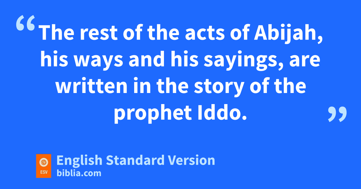 13 Jeroboam had sent van ambush around to come upon them from behind. Thus his troops5 were in front of Judah, and the ambush was behind them. 14 And when Judah looked, behold, the battle was in front of and behind them. wAnd they cried to the Lord, and the priests tblew the trumpets. 15 Then the men of Judah raised the battle shout. And when the men of Judah shouted, xGod defeated Jeroboam and all Israel before Abijah and Judah. 16 The men of Israel fled before Judah, yand God gave them into their hand. 17 Abijah and his people struck them with great force, so there fell slain of Israel 500,000 chosen men. 18 Thus the men of Israel were subdued at that time, and the men of Judah prevailed, zbecause they relied on the Lord, the God of their fathers. 19 And Abijah pursued Jeroboam aand took cities from him, Bethel with its villages and Jeshanah with its villages and bEphron6 with its villages. 20 Jeroboam did not recover his power in the days of Abijah. cAnd the Lord struck him down, dand he died. 21 But Abijah grew mighty. And he took fourteen wives and had twenty-two sons and sixteen daughters. 22 The rest of the acts of Abijah, his ways and his sayings, are written in the estory of the prophet fIddo.