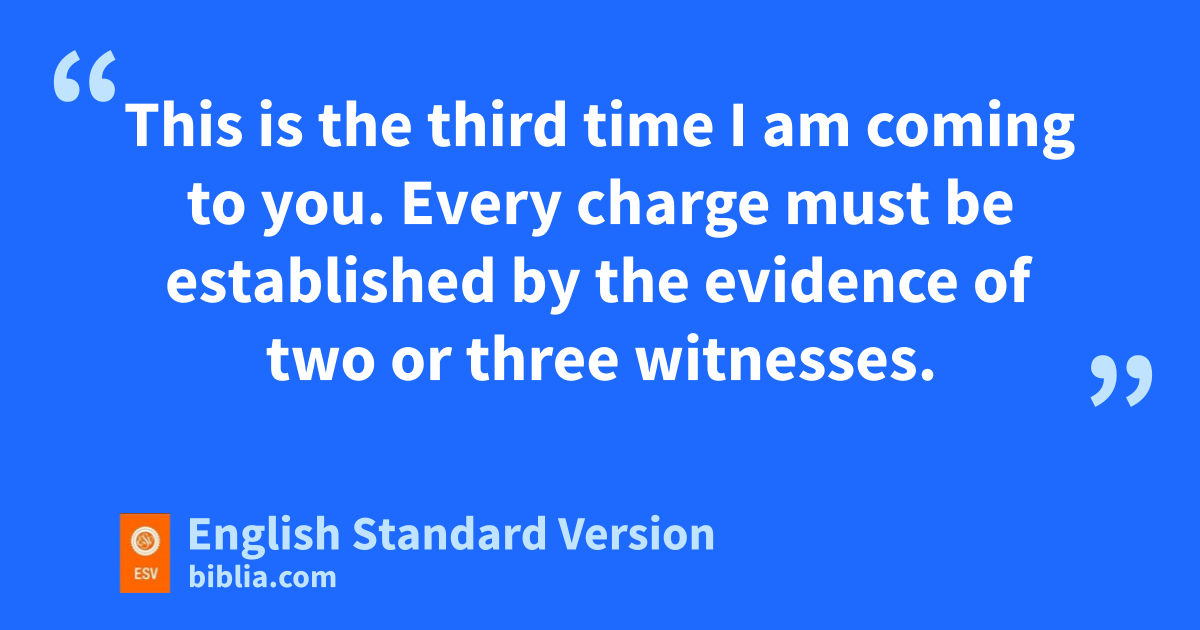 13 kThis is the third time I am coming to you. Every charge must be established lby the evidence of two or three witnesses. 2 mI warned nthose who sinned before and all the others, and I warn them now while absent, as I did when present on my second visit, that oif I come again I will not spare them— 3 since you seek proof that Christ pis speaking in me. He is not weak in dealing with you, but qis powerful among you. 4 For rhe was crucified in weakness, but slives by the power of God. For twe also are weak in him, but in dealing with you uwe will live with him by the power of God.