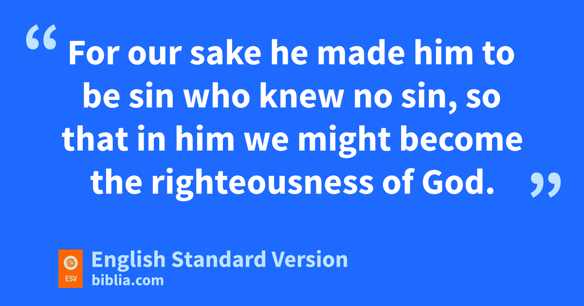 16 From now on, therefore, hwe regard no one according to the flesh. Even though we once regarded Christ according to the flesh, we regard him thus no longer. 17 Therefore, if anyone is iin Christ, he is ja new creation.2 kThe old has passed away; behold, the new has come. 18 All this is from God, lwho through Christ reconciled us to himself and gave us mthe ministry of reconciliation; 19 that is, in Christ God was reconciling3 the world to himself, nnot counting their trespasses against them, and entrusting to us mthe message of reconciliation. 20 Therefore, owe are ambassadors for Christ, pGod making his appeal through us. We implore you on behalf of Christ, be reconciled to God. 21 qFor our sake he made him to be sin rwho knew no sin, so that in him we might become sthe righteousness of God.