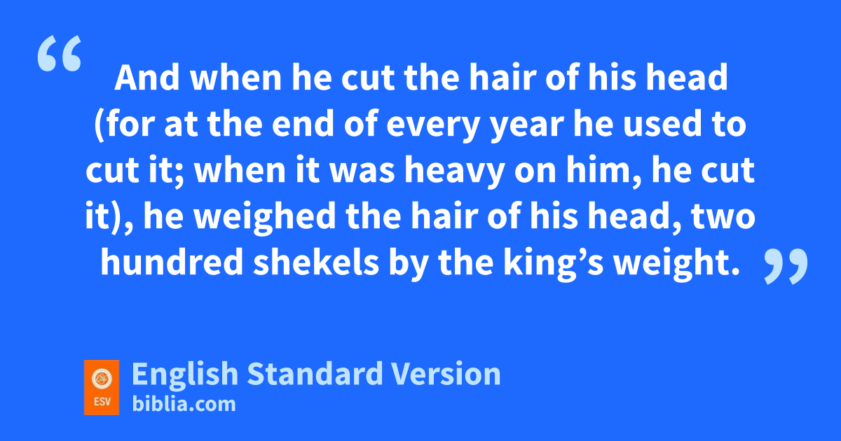 25 Now in all Israel there was no one so much to be praised for his handsome appearance as Absalom. rFrom the sole of his foot to the crown of his head there was no blemish in him. 26 And when he cut the hair of his head (for at the end of every year he used to cut it; when it was heavy on him, he scut it), he weighed the hair of his head, two hundred shekels1 by the king’s weight. 27 There were born tto Absalom three sons, and one daughter whose name was Tamar. She was a beautiful woman.