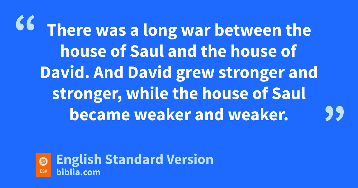 3 There was a long war between the house of Saul and the house of David. And David grew stronger and stronger, while the house of Saul became weaker and weaker.