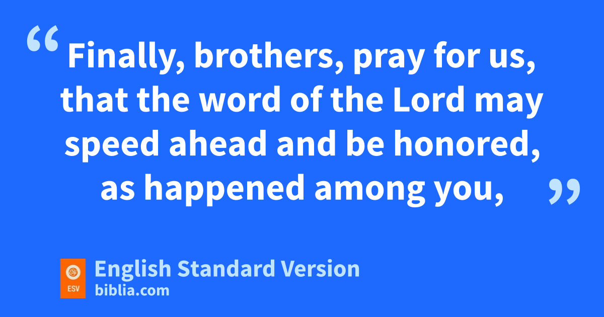 3 Finally, brothers,1 jpray for us, that kthe word of the Lord may speed ahead and be honored,2 as happened among you, 2 and lthat we may be delivered from wicked and evil men. For mnot all have faith. 3 But nthe Lord is faithful. He will establish you and oguard you against pthe evil one.3 4 And qwe have confidence in the Lord about you, that you are doing and will do the things that we command. 5 May the Lord rdirect your hearts to the love of God and to the steadfastness of Christ.
