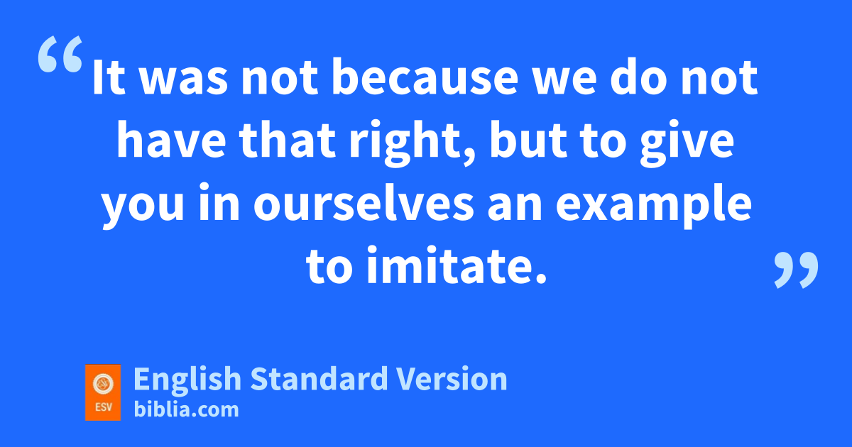 6 Now we command you, brothers, sin the name of our Lord Jesus Christ, tthat you keep away from any ubrother vwho is walking in idleness and not in accord with the tradition that you received from us. 7 For you yourselves know whow you ought to imitate us, because xwe were not idle when we were with you, 8 nor did we eat anyone’s bread without paying for it, but ywith toil and labor we worked night and day, that we might not be a burden to any of you. 9 It was znot because we do not have that right, but to give you in ourselves aan example to imitate. 10 For even when we were with you, we would give you this command: bIf anyone is not willing to work, let him not eat. 11 For we hear that some among you cwalk in idleness, not busy at work, but dbusybodies. 12 Now such persons we command and encourage in the Lord Jesus Christ to do their work quietly and to earn their own living.4