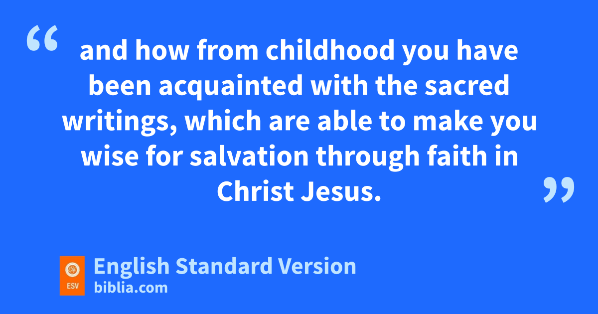 10 pYou, however, have followed my teaching, my conduct, my aim in life, my faith, my patience, my love, my steadfastness, 11 my persecutions and sufferings that happened to me qat Antioch, rat Iconium, and sat Lystra—which persecutions I endured; yet tfrom them all uthe Lord rescued me. 12 Indeed, all who desire to vlive a godly life in Christ Jesus wwill be persecuted, 13 while xevil people and impostors will go on from bad to worse, deceiving and ybeing deceived. 14 But as for you, zcontinue in what you have learned and have firmly believed, knowing from whom1 you learned it 15 and how afrom childhood you have been acquainted with bthe sacred writings, cwhich are able to make you wise for salvation through faith in Christ Jesus. 16 dAll Scripture is breathed out by God and profitable for teaching, for reproof, for correction, and for training in righteousness, 17 that ethe man of God2 may be complete, fequipped gfor every good work.