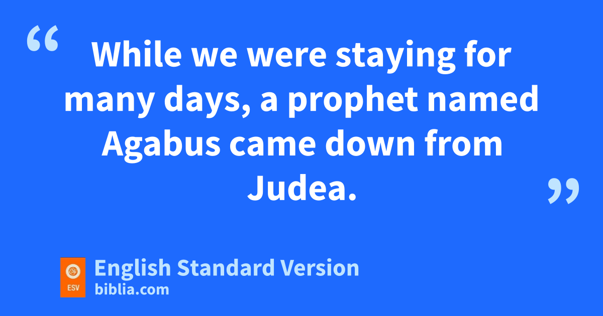 7 When we had finished the voyage from Tyre, we arrived at Ptolemais, and we greeted xthe brothers2 and stayed with them for one day. 8 On the next day we departed and came to Caesarea, and we entered the house of yPhilip zthe evangelist, who was one of the seven, and stayed with him. 9 He had four unmarried daughters, awho prophesied. 10 While we were staying for many days, a prophet named bAgabus came down from Judea. 11 And coming to us, he ctook Paul’s belt and bound his own feet and hands and said, d“Thus says the Holy Spirit, e‘This is how the Jews3 at Jerusalem will bind the man who owns this belt and fdeliver him into the hands of the Gentiles.’ ” 12 When we heard this, we and the people there gurged him not to go up to Jerusalem. 13 Then Paul answered, g“What are you doing, weeping and breaking my heart? For hI am ready not only to be imprisoned but even to die in Jerusalem ifor the name of the Lord Jesus.” 14 And since he would not be persuaded, jwe ceased and said, k“Let the will of the Lord be done.”
