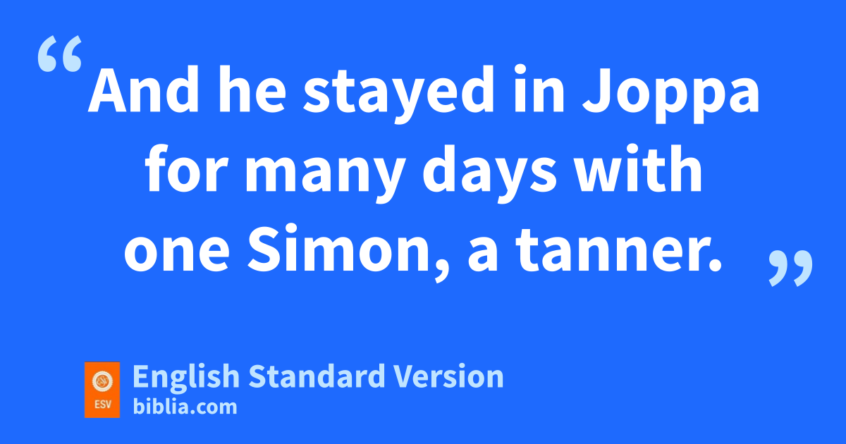 36 Now there was in mJoppa a disciple named Tabitha, which, translated, means Dorcas.4 She was full of ngood works and acts of charity. 37 In those days she became ill and died, and when they had washed her, they laid her in oan upper room. 38 Since Lydda was near Joppa, the disciples, hearing that Peter was there, sent two men to him, urging him, p“Please come to us without delay.” 39 So Peter rose and went with them. And when he arrived, they took him to qthe upper room. All the widows stood beside him weeping and showing tunics5 and other garments that Dorcas made while she was with them. 40 But Peter rput them all outside, and sknelt down and prayed; and turning to the body the said, “Tabitha, arise.” And she opened her eyes, and when she saw Peter she sat up. 41 And he gave her his hand and raised her up. Then, calling the saints and widows, he presented her alive. 42 And it became known throughout all Joppa, and umany believed in the Lord. 43 And he stayed in Joppa for many days vwith one Simon, a tanner.