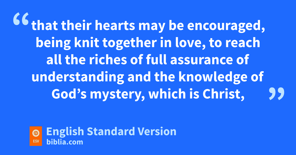 2 For I want you to know yhow great a wstruggle I have for you and for those at Laodicea and for all who have not seen me face to face, 2 that ztheir hearts may be encouraged, being aknit together in love, to reach all the riches of full assurance of understanding and the knowledge of bGod’s mystery, which is Christ, 3 cin whom are hidden all the treasures of wisdom and knowledge. 4 I say this in order dthat no one may delude you with plausible arguments. 5 For ethough I am absent in body, yet I am with you in spirit, rejoicing to see your fgood order and gthe firmness of your faith in Christ.