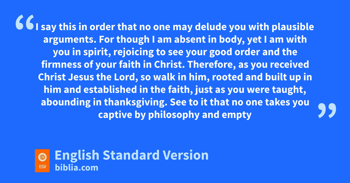 2 For I want you to know yhow great a wstruggle I have for you and for those at Laodicea and for all who have not seen me face to face, 2 that ztheir hearts may be encouraged, being aknit together in love, to reach all the riches of full assurance of understanding and the knowledge of bGod’s mystery, which is Christ, 3 cin whom are hidden all the treasures of wisdom and knowledge. 4 I say this in order dthat no one may delude you with plausible arguments. 5 For ethough I am absent in body, yet I am with you in spirit, rejoicing to see your fgood order and gthe firmness of your faith in Christ.