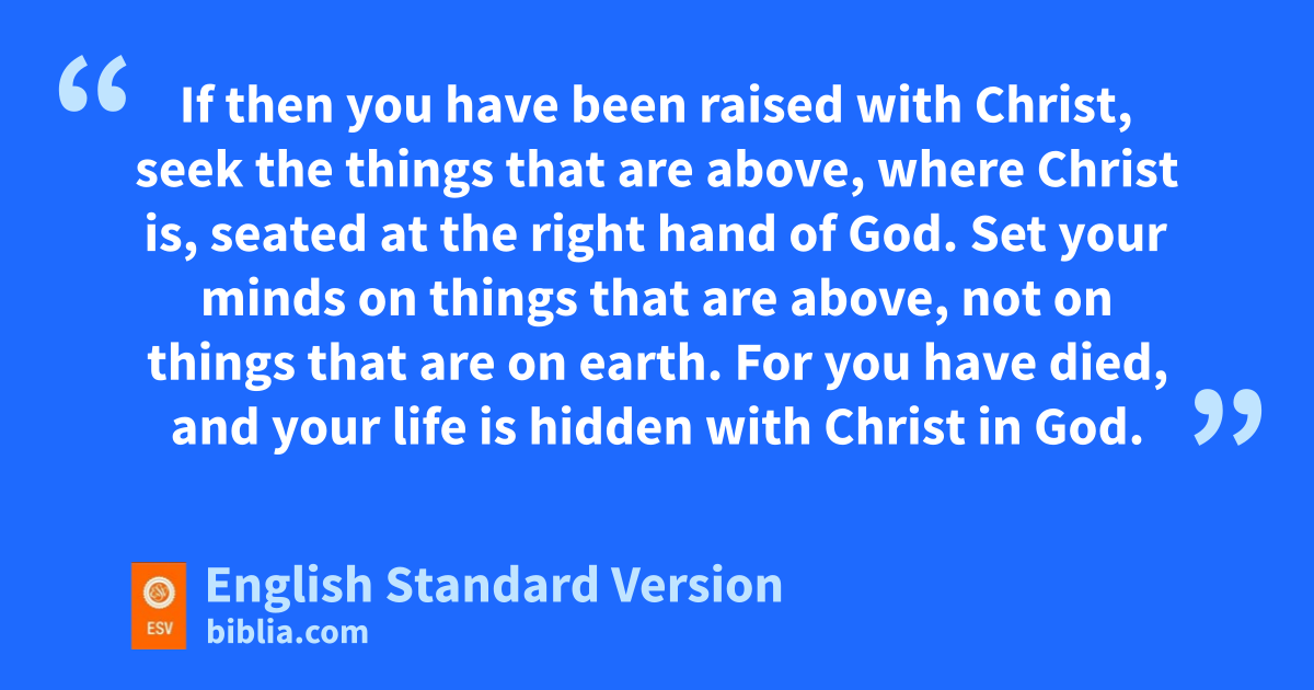 3 bIf then you have been raised with Christ, seek cthe things that are above, where Christ is, dseated at the right hand of God. 2 eSet your minds on things that are above, not on things that are on earth. 3 For fyou have died, and your life is hidden with Christ in God. 4 When Christ gwho is your1 life happears, then you also will appear with him iin glory.