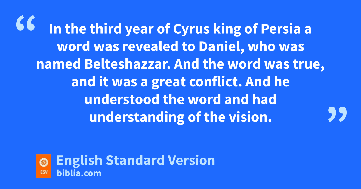 10 bIn the third year of Cyrus king of Persia a word was revealed to Daniel, cwho was named Belteshazzar. And dthe word was true, and it was a great conflict.1 And ehe understood the word and ehad understanding of the vision.