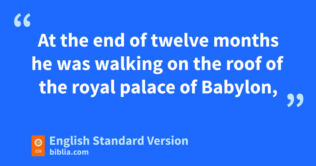 28 All this came upon King Nebuchadnezzar. 29 At the end of twelve months he was walking on the roof of the royal palace of Babylon, 30 and the king answered and said, j“Is not this great Babylon, which I have built by kmy mighty power as a royal residence and for kthe glory of my majesty?” 31 lWhile the words were still in the king’s mouth, there fell a voice from heaven, “O King Nebuchadnezzar, to you it is spoken: The kingdom has departed from you, 32 mand you shall be driven from among men, and your dwelling shall be with the beasts of the field. And you shall be made to eat grass like an ox, and seven periods of time shall pass over you, muntil you know that the Most High rules the kingdom of men and gives it to whom he will.” 33 Immediately the word was fulfilled against Nebuchadnezzar. mHe was driven from among men and ate grass like an ox, and his body was wet with the dew of heaven till his hair grew as long as eagles’ feathers, and his nails were like birds’ claws.