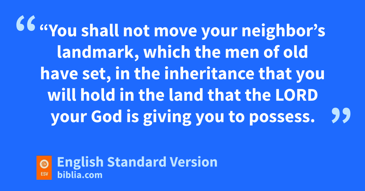 14 a“You shall not move your neighbor’s landmark, which the men of old have set, in the inheritance that you will hold in the land that the Lord your God is giving you to possess.