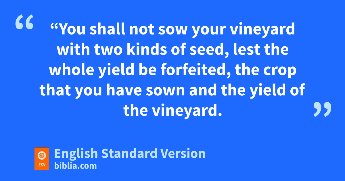 9 x“You shall not sow your vineyard with two kinds of seed, lest the whole yield be forfeited,1 the crop that you have sown and the yield of the vineyard. 10 You shall not plow with an ox and a donkey together. 11 You shall not wear cloth of wool and linen mixed together.