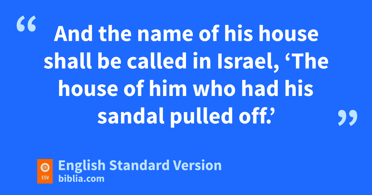 5 e“If brothers dwell together, and one of them dies and has no son, the wife of the dead man shall not be married outside the family to a stranger. Her fhusband’s brother shall go in to her and take her as his wife and perform the duty of a husband’s brother to her. 6 And the first son whom she bears shall succeed to the name of his dead brother, that ghis name may not be blotted out of Israel. 7 And if the man does not wish to take his brother’s wife, then his brother’s wife shall hgo up to the gate to the elders and say, ‘My husband’s brother refuses to perpetuate his brother’s name in Israel; he will not perform the duty of a husband’s brother to me.’ 8 Then the elders of his city shall call him and speak to him, and if he persists, saying, i‘I do not wish to take her,’ 9 then his brother’s wife shall go up to him in the presence of the elders and jpull his sandal off his foot and kspit in his face. And she shall answer and say, ‘So shall it be done to the man who does not lbuild up his brother’s house.’ 10 And the name of his house1 shall be called in Israel, ‘The house of him who had his sandal pulled off.’