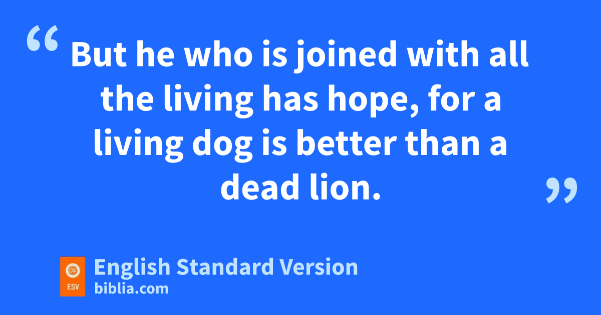 9 But all this I laid to heart, examining it all, chow the righteous and the wise and their deeds are din the hand of God. Whether it is love or hate, man does not know; both are before him. 2 eIt is the same for all, since fthe same event happens to the righteous and the wicked, to the good and the evil,1 to the clean and the unclean, to him who sacrifices and him who does not sacrifice. As the good one is, so is the sinner, and he who gswears is as he who shuns an oath. 3 This is an evil in all that is done under the sun, that ethe same event happens to all. Also, the hearts of the children of man are full of evil, and hmadness is in their hearts while they live, and after that they go to the dead. 4 But he who is joined with all the living has hope, for a living dog is better than a dead lion. 5 For the living know that they will die, but ithe dead know nothing, and they have no more reward, for jthe memory of them is forgotten. 6 Their love and their hate and their envy have already perished, and forever they have no more share in all that is done under the sun.