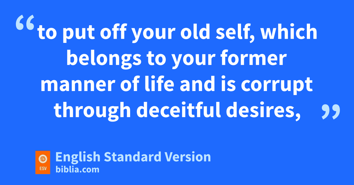 17 Now this I say and dtestify in the Lord, ethat you must no longer walk as the Gentiles do, fin the futility of their minds. 18 They gare darkened in their understanding, halienated from the life of God because of the ignorance that is in them, due to itheir hardness of heart. 19 They jhave become callous and khave given themselves up to sensuality, greedy to practice every kind of impurity. 20 But that is not the way you llearned Christ!— 21 assuming that myou have heard about him and nwere taught in him, as the truth is in Jesus, 22 to oput off pyour old self,6 which belongs to your former manner of life and is corrupt through qdeceitful desires, 23 and rto be renewed in the spirit of your minds, 24 and to put on sthe new self, tcreated after the likeness of God in true righteousness and holiness.