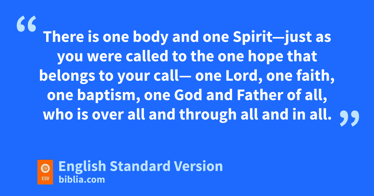 4 I therefore, ma prisoner for the Lord, urge you to nwalk in a manner worthy of othe calling to which you have been called, 2 with all phumility and qgentleness, with rpatience, sbearing with one another in love, 3 eager to maintain the unity of the Spirit in tthe bond of peace. 4 There is uone body and vone Spirit—just as you were called to the one whope that belongs to your call— 5 xone Lord, yone faith, zone baptism, 6 aone God and Father of all, bwho is over all and through all and in all. 7 But cgrace was given dto each one of us eaccording to the measure of Christ’s gift. 8 Therefore it says,