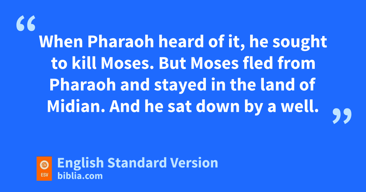 11 One day, zwhen Moses had grown up, he went out to his people and looked on their aburdens, and he saw an Egyptian beating a Hebrew, one of his people.3 12 He looked this way and that, and seeing no one, he bstruck down the Egyptian and hid him in the sand. 13 When che went out the next day, behold, two Hebrews were struggling together. And he said to the man in the wrong, “Why do you strike your companion?” 14 He answered, d“Who made you a prince and a judge over us? Do you mean to kill me as you killed the Egyptian?” Then Moses was afraid, and thought, “Surely the thing is known.” 15 When Pharaoh heard of it, he sought to kill Moses. But eMoses fled from Pharaoh and stayed in the land of Midian. And he sat down by fa well.