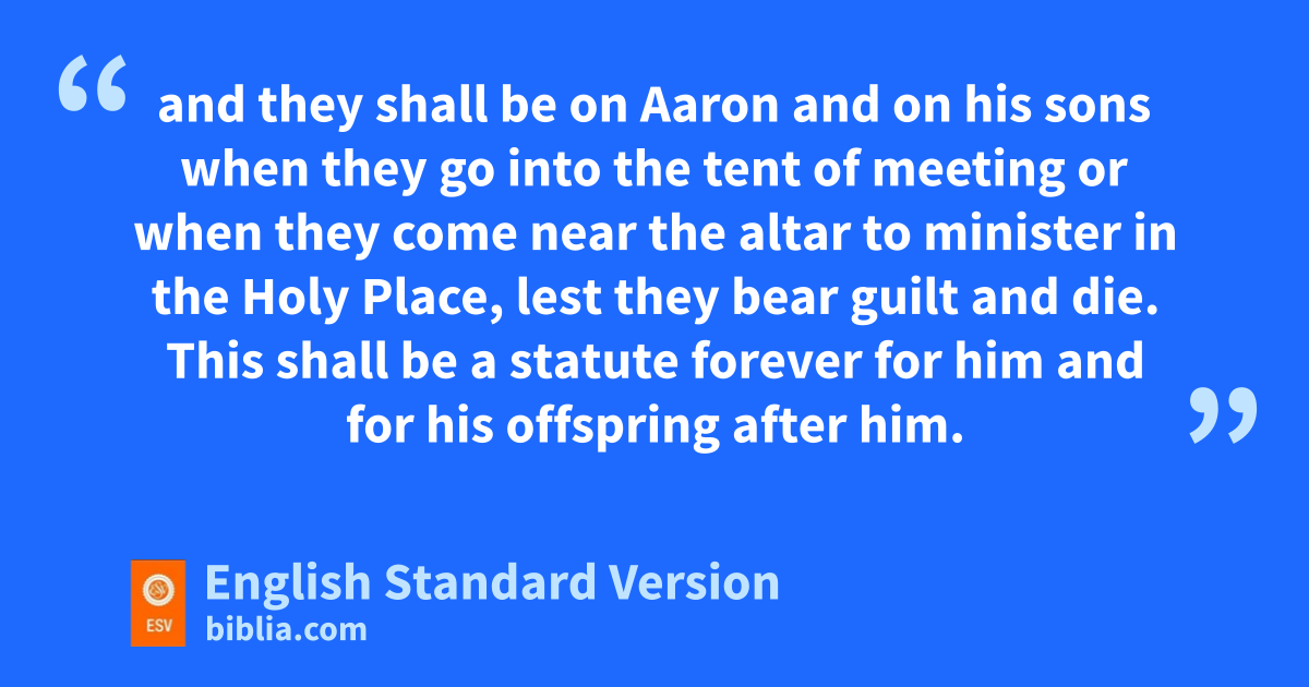 36 “You shall make ra plate of pure gold and engrave on it, like the engraving of a signet, s‘Holy to the Lord.’ 37 And you shall fasten it on the turban by a cord of blue. It shall be on the front of the turban. 38 It shall be on Aaron’s forehead, and Aaron shall tbear any guilt from the holy things that the people of Israel consecrate as their holy gifts. It shall regularly be on his forehead, that they may be accepted before the Lord.